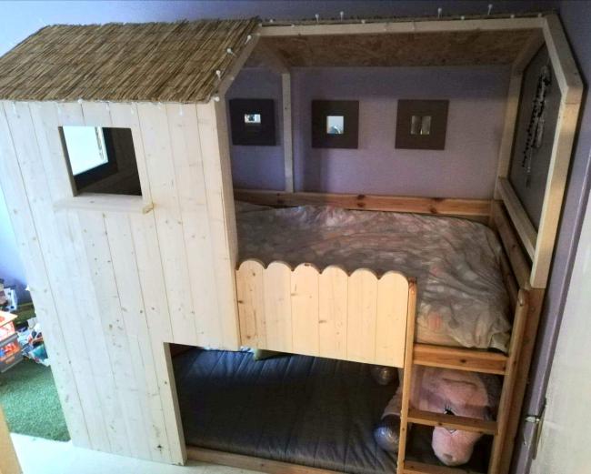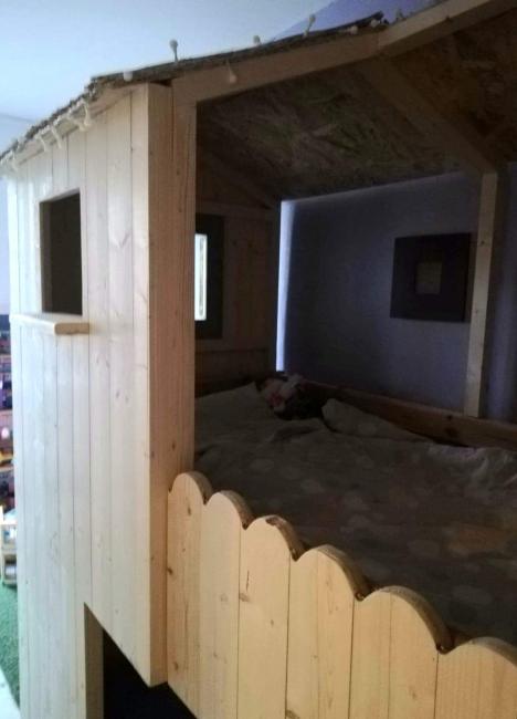 Modification d'un lit enfant "mezzanine demie-hauteur" en lit cabane.