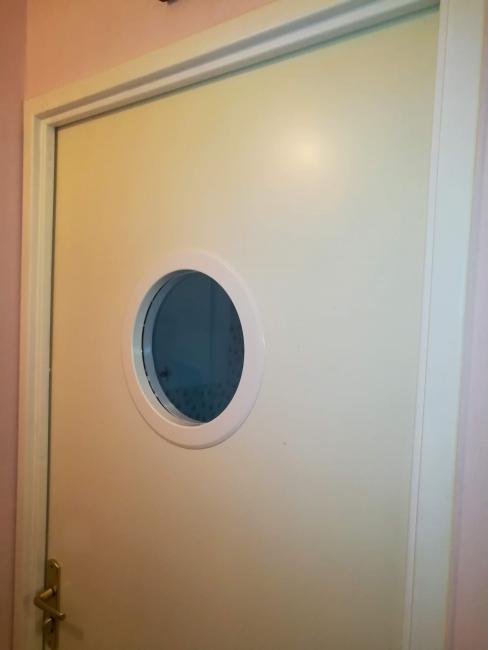 Pose d'un hublot de porte DescriptionPose d'un hublot sur une porte intérieure. Prestation Agencement